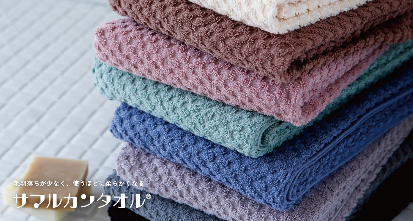 毛羽が劇的に少ないサマルカンタオル ■ミニバスタオル 2枚セット■ 約40×100cm/約155g 綿100%で柔らかい肌触り◎吸水性抜群の「デコボコ柄」 [1個ならゆうパケット]